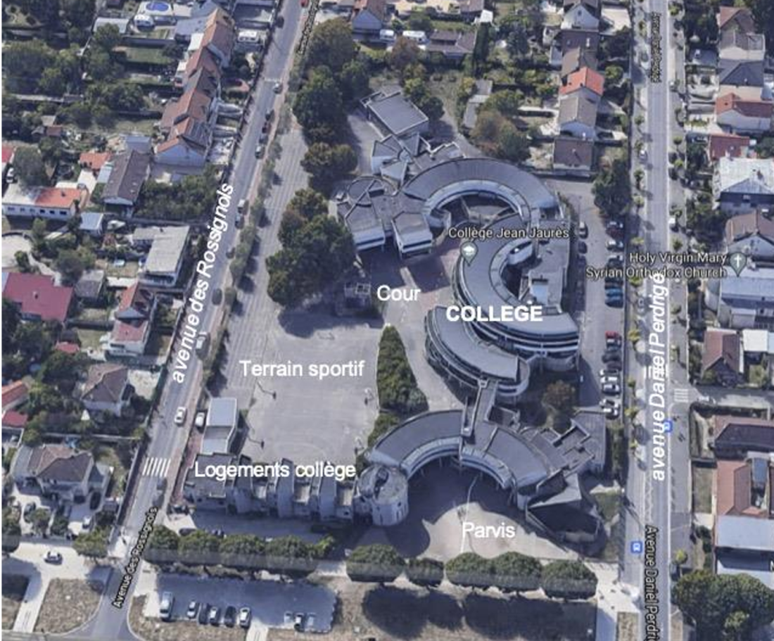 Photo illustrant le Collège Jean JAURES à Montfermeil, cœur d’un projet de rénovation axé sur la résilience écologique, suite au diagnostic des désordres liés à des infiltrations d’eau sur les toitures.